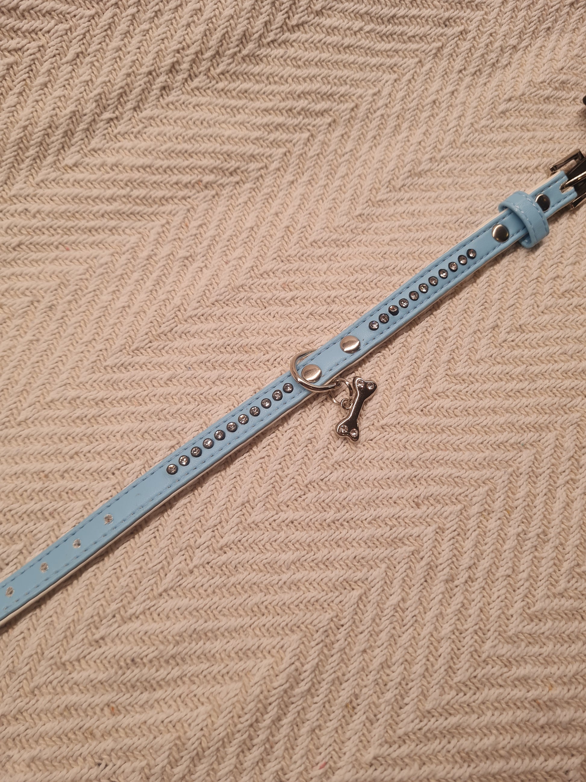 Offrez à votre compagnon une touche d’élégance avec ce collier bleu ciel, spécialement conçu pour les petits chiens.