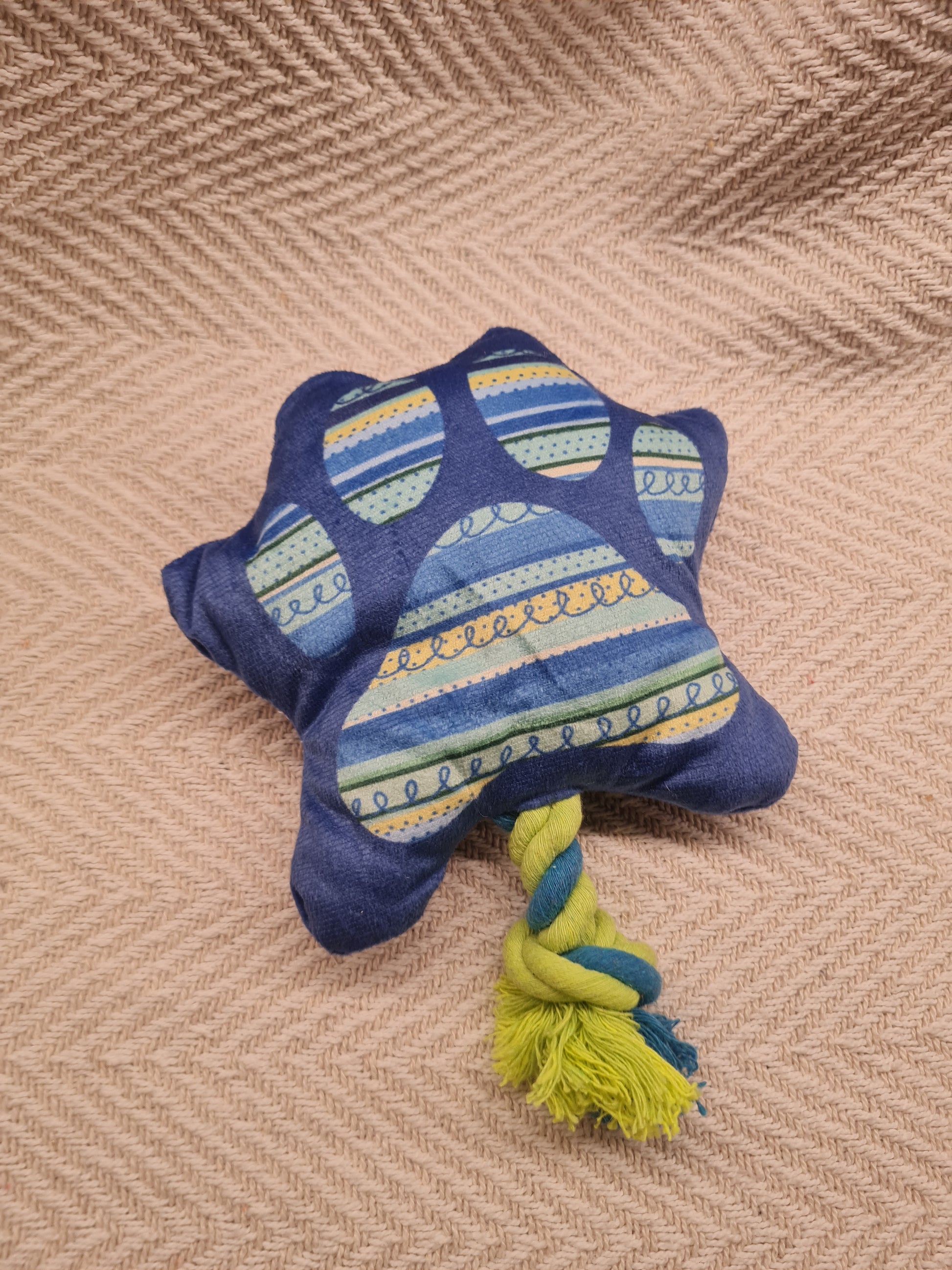 - 🪢 Corde torsadée : bleu et vert, idéale pour tirer ou mâchouiller