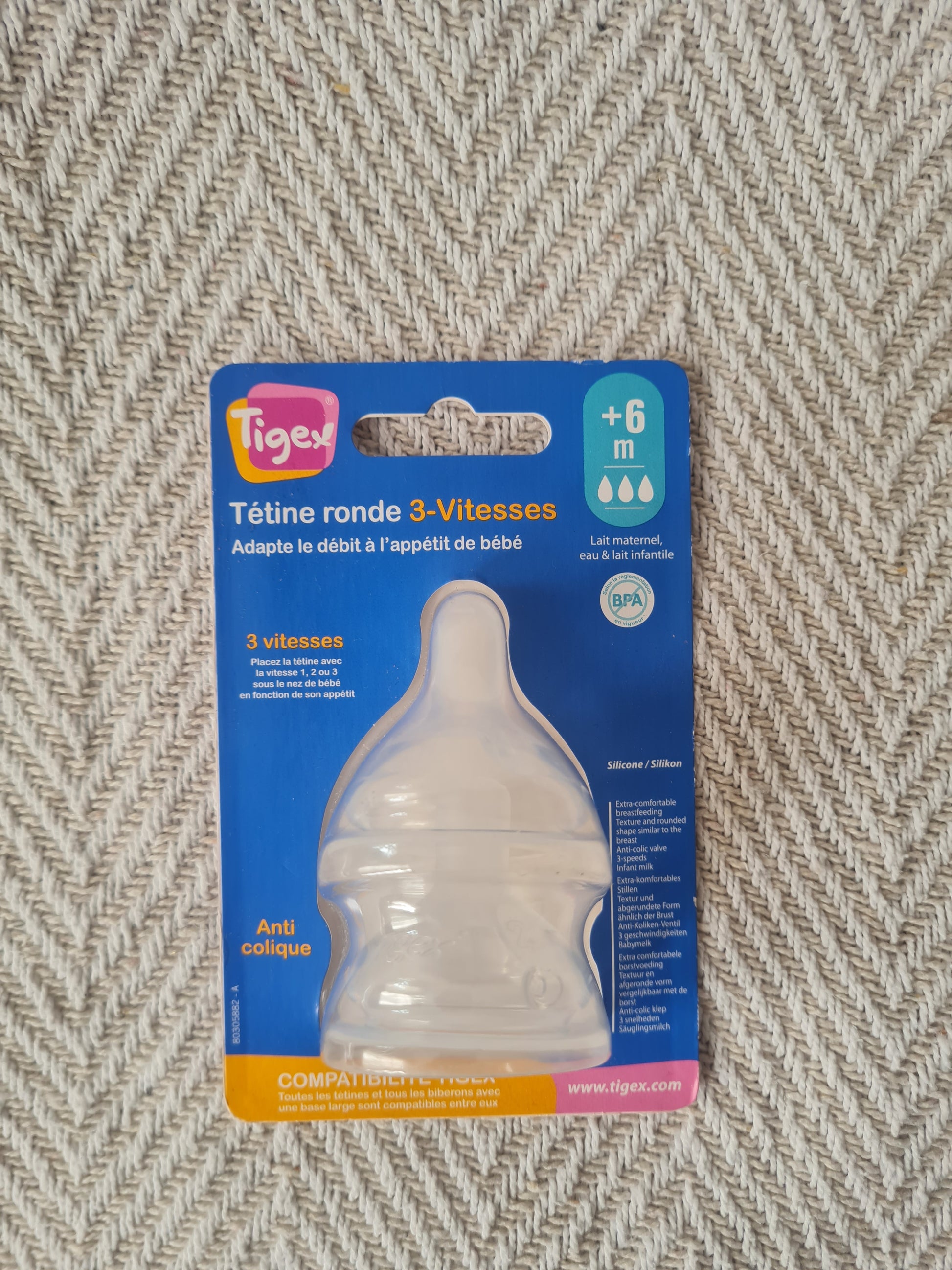 Offrez à votre bébé un confort optimal avec la tétine Tigex 3 vitesses, conçue pour s’adapter à son appétit tout en réduisant les coliques.